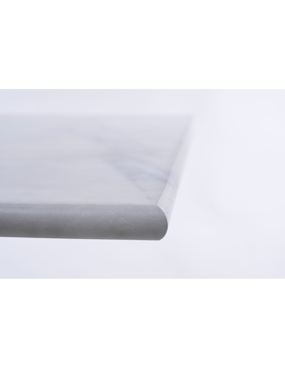 Tampo em mármore branca com 2 cm de espessura, polido e com arestas arredondadas.