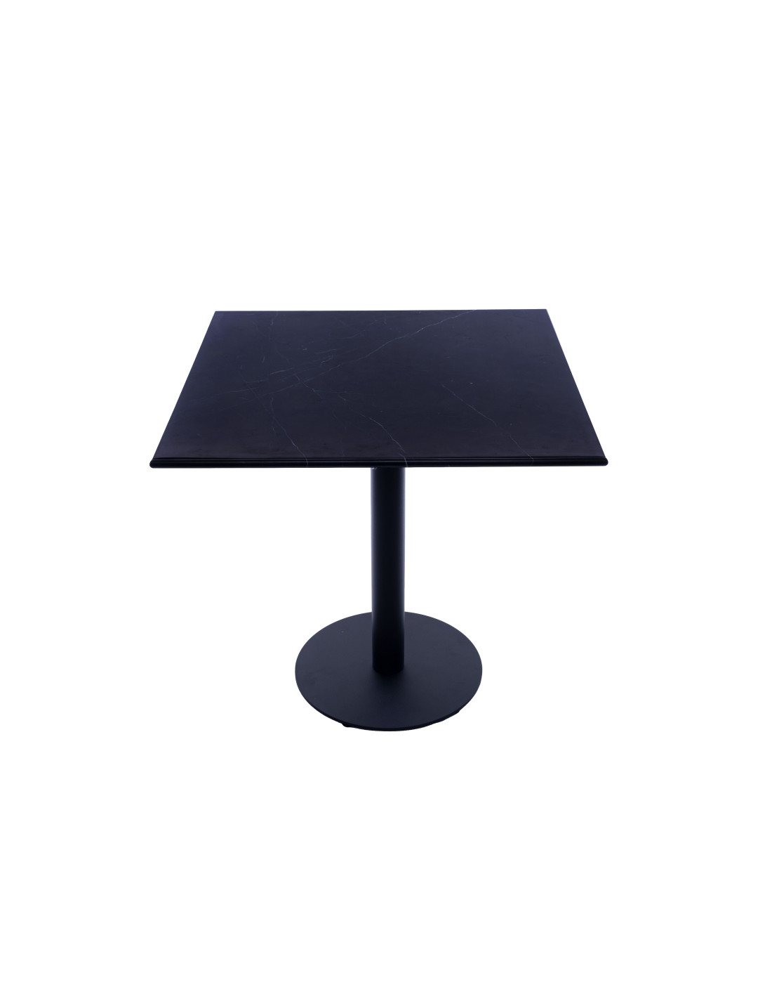 Tampo em mármore negra marquina com 2 cm de espessura, polido e com arestas arredondadas.