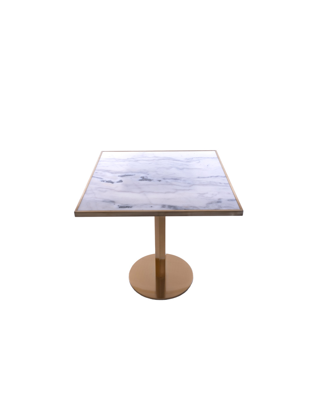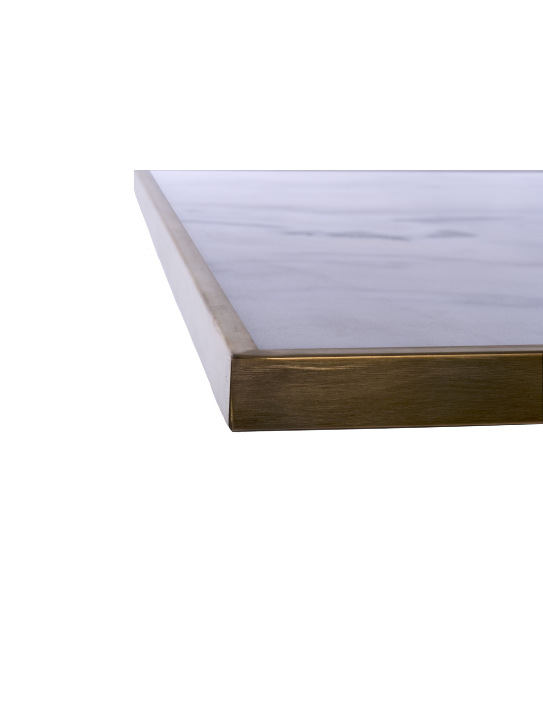 Tampo em mármore branca com 2 cm de espessura, polido e com moldura dourada de 4cm.